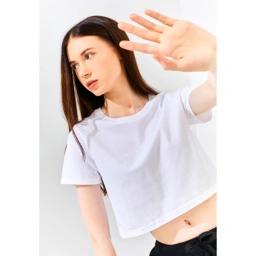 Desain simpel dan elegan yang mudah dipadupadankan dengan berbagai bawahan, menjadikan Crop Tee pilihan sempurna untuk gaya kasual yang tetap stylish.